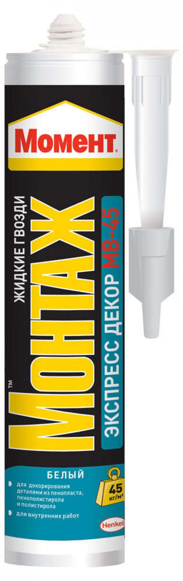 Клей, который обрел популярность благодаря своей универсальности. Круг его применения очень широк. Этот клеящий состав может применяться не только для потолочного плинтуса. Используют его так же для склеивания линолеума, половых плинтусов, керамической плитки, паркетной доски.