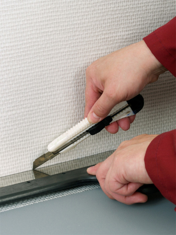 - После наклеивания длина обойного полотна легко подгонится под параметры при помощи канцелярского ножа.