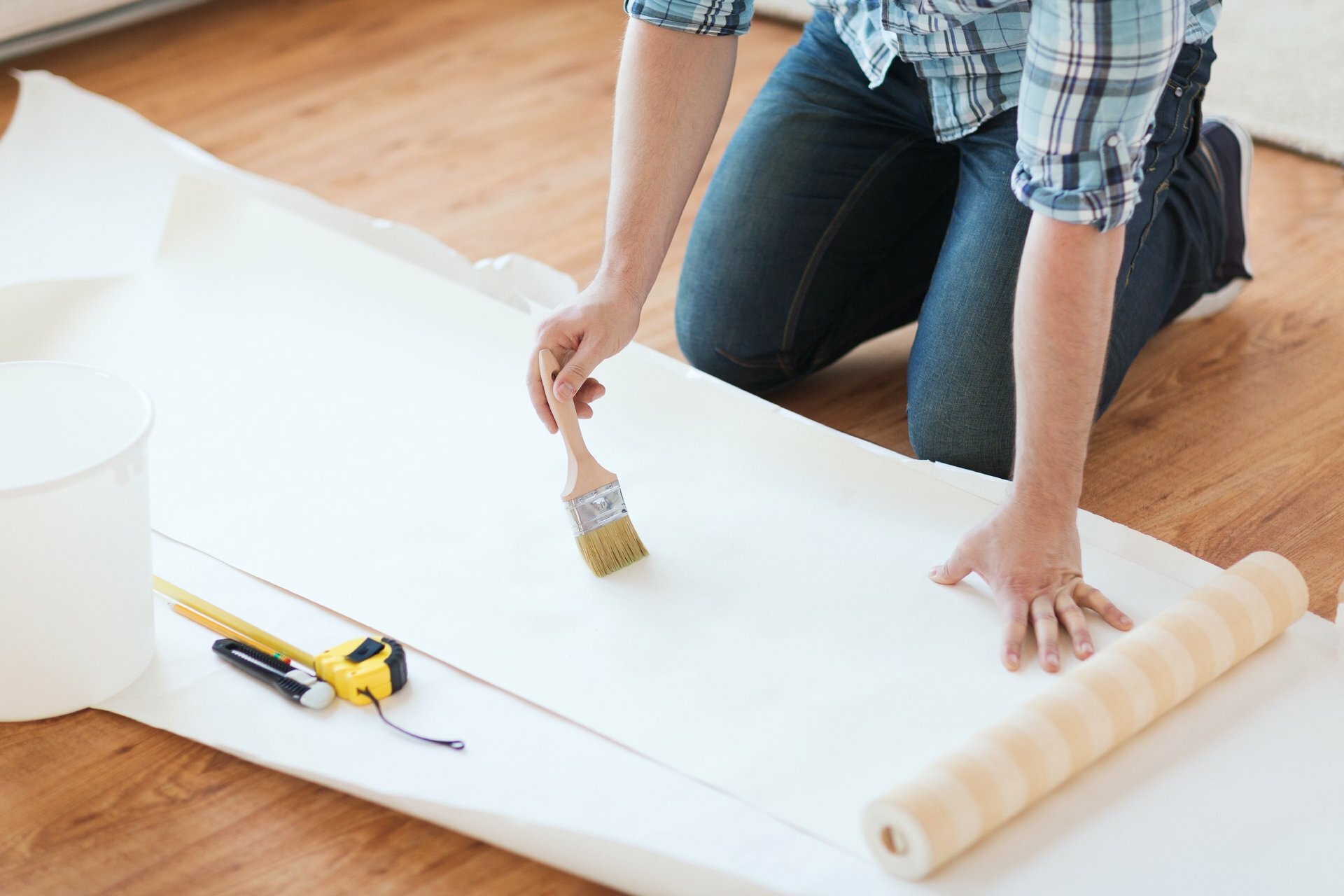 - Расстелить на полу или на столе защитный слой бумаги, разложить полотна. Важно, чтобы бумага не линяла и не отпечаталась на рулоне при намокании. Особенно это актуально для белых и светлых обоев.