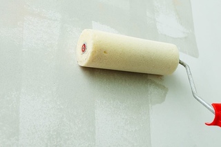 - Нанесите грунтовку на подготовленные стены. Выберите грунт, который сделан специально для подготовки стен к поклейке обоев.Грунтовка поможет виниловым обоям лучше приклеиться к поверхности.
