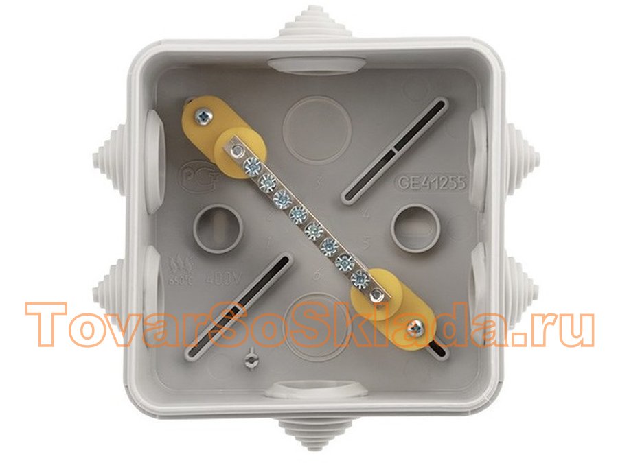 - Коробка уравнивания потенциалов (КУП), снабженная специальной клеммной колодкой (ШДУП) для дополнительного подключения элементов с токопроводящими свойствами. Желательно выбрать изделие известных брендов, например, DKC, Hegel или отечественные модели КУП2604, КУП2603, КУП1101 и т.д. Размер коробки подбирается в зависимости от количества подключаемых элементов. В большинстве случаев будет достаточно типовых 100х100х50 мм, например, как КУП в исполнении для открытой установки, продемонстрированная на рисунке 4.