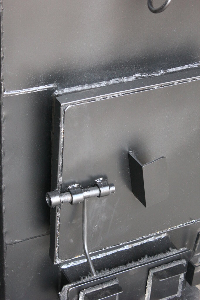 - По центру спереди установки расположен шибер, который не допускает попадания дымовых газов в помещение.