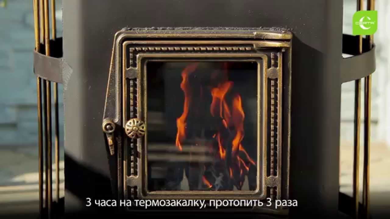 4. После нанесения патины даем 24 часа на полное высыхание. Последним этапом проводим термозакалку. Сначала небольшим количеством щепы протапливаем в течение 30 минут. Постепенно подкладываем и увеличиваем температуру в топке в течение 3-х часов. Во время протопки печь может дымить и давать неприятный запах, который после 3-х протопок полностью проходит.