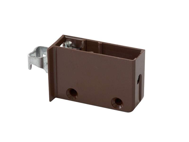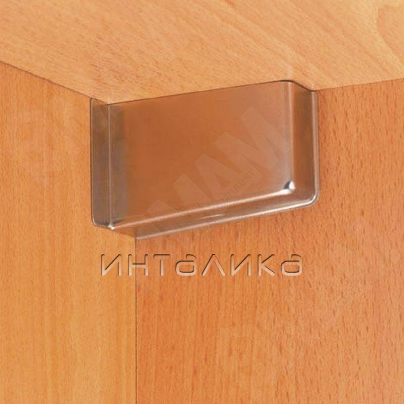 Эта плоская деталь имеет прорезь, напоминающую по конфигурации замочную скважину. Подбирается она так, чтобы диаметр наиболее широкой части отверстия был немного больше, чем головка самореза. Размер узкой части отверстия должен чуть превышать диаметр резьбы. При навешивании шкафа головка самореза входит в широкую часть прорези, а затем под весом перемещается в узкую зону, обеспечивая надежность крепления.