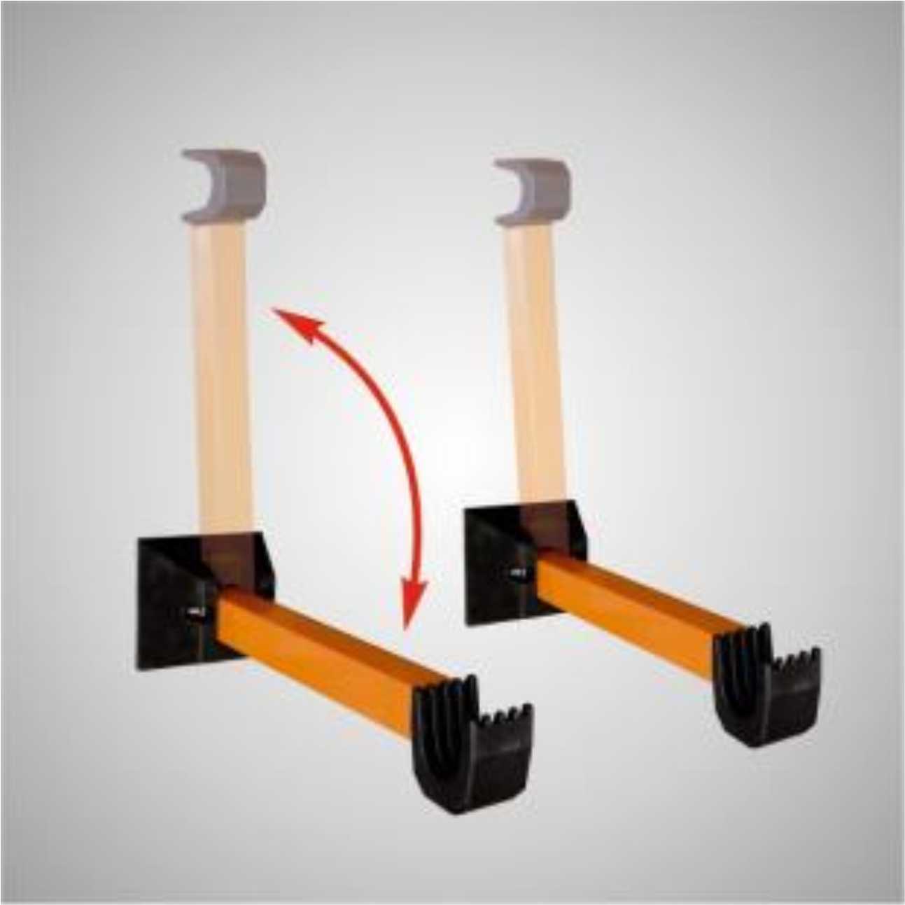 Высота рычагов регулируется, что позволяет настроить пространство между стойками для хранения досок или комплектов лыж и палок. Кроме того, они имеют прорези, поэтому при хранении досок вы сможете надежно зафиксировать их на каждой руке.