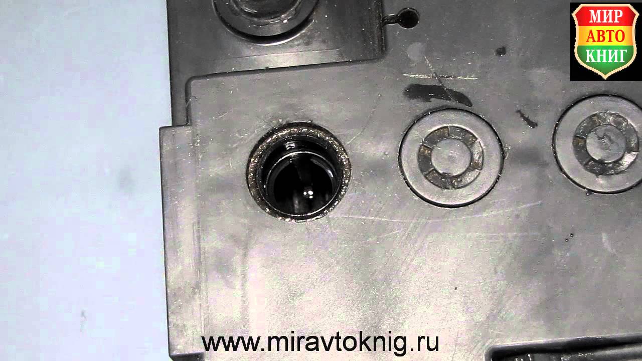 - Открутите пробку аккумулятора. Предварительно тщательно очистите фронтальную поверхность агрегата, чтобы при его вскрытии в систему не попали частицы грязи.