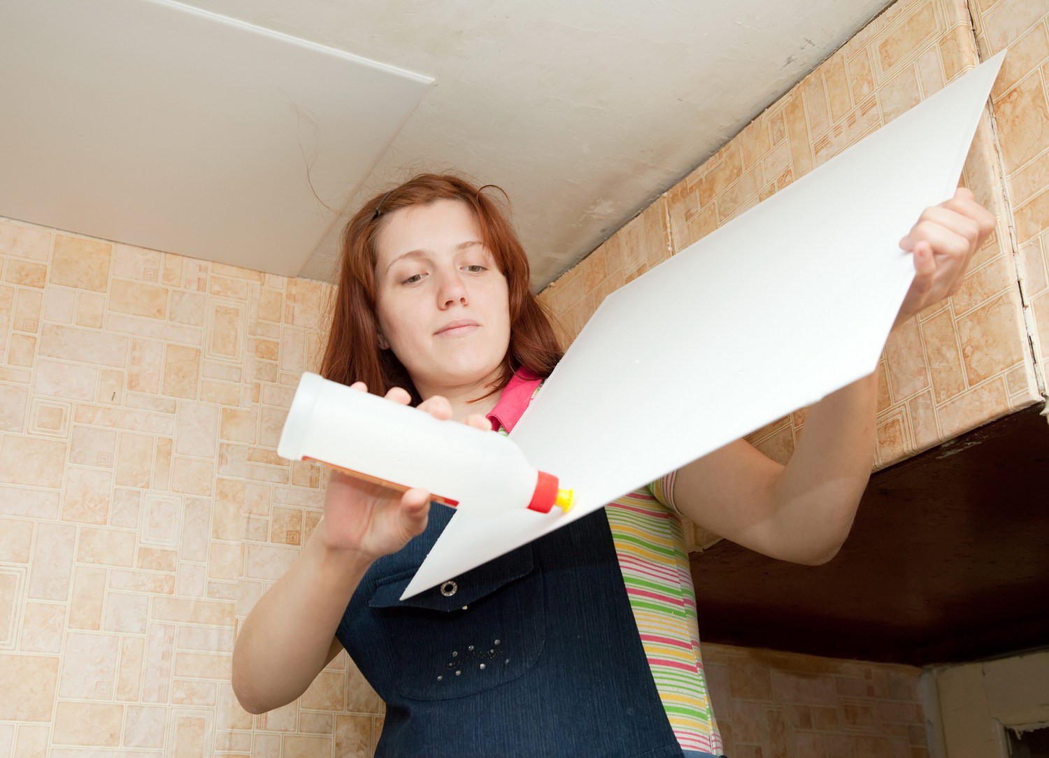 Часто при покупке кухни, модели идут с уже установленным фартуком из фанеры. Перед тем как клеить кафельную плитку на кухне, нужно помнить, что фанера хорошо впитывает влагу и можно применять стандартные виды клея. Для того чтоб облицевать фартук, нужен тонкослойный клей с повышенной адгезией и устойчивый к перепадам температур. Также состав должен иметь полимерные присадки, позволяющие укладывать плитку на деформируемые поверхности.
