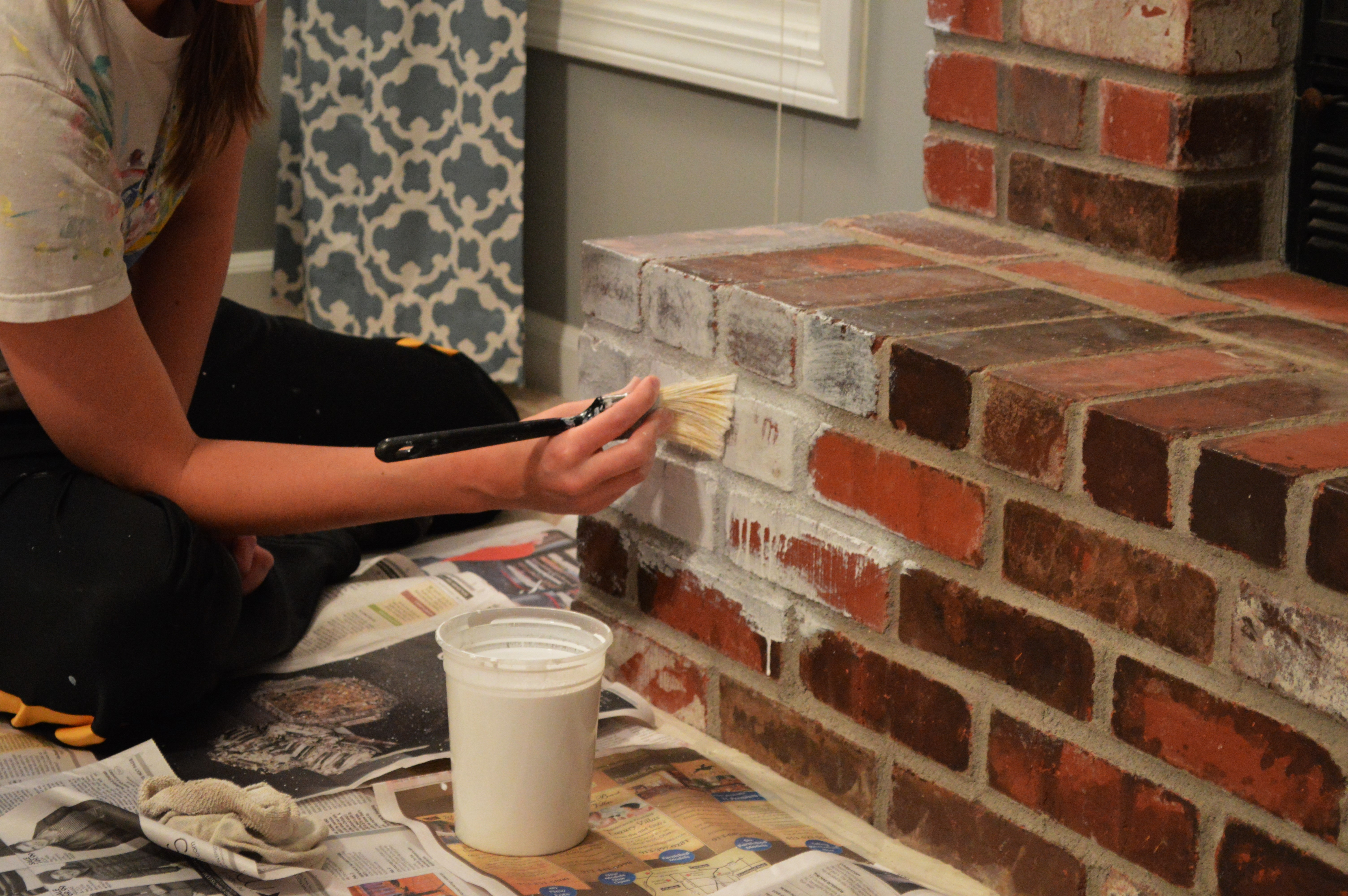 - Берём подходящую кисть и закрашиваем все зазоры между кирпичами.