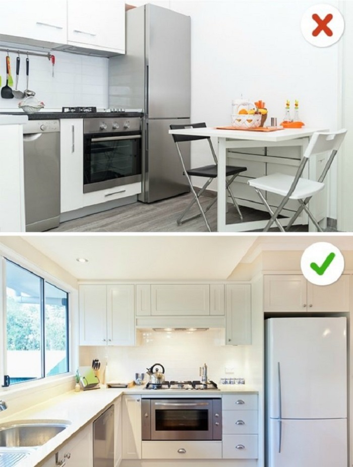 В планировке многих квартир на обустройство кухни отведено не более 5-6 кв. м. В таких условиях разместить холодильник и плиту по рекомендованным правилам не всегда получается
