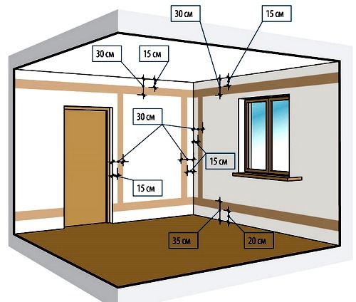 - от дверного косяка точки питания отодвигают на 10-15 см.