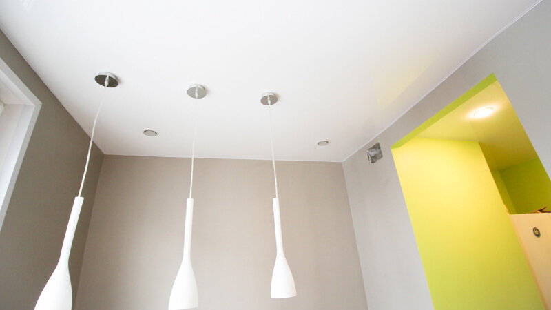 В процессе монтажа потолка не останется пыли и мусора. - Безопасность — Материал натяжного потолка не содержит вредных компонентов, не имеет запаха, негорючий, гипоаллергенен. Натяжные потолки можно устанавливать в больницах или детских садах.