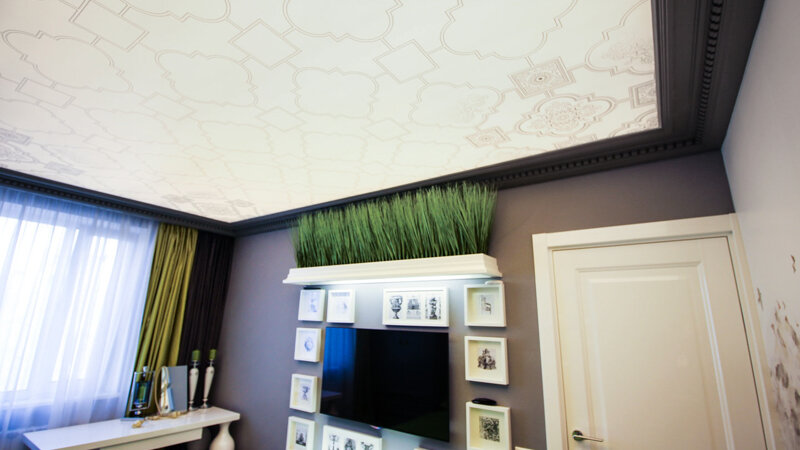 - Переустановка — цвет и фактуру потолка можно изменить, удалив старый материал и установив новый на той же раме.