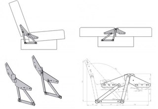 На боковые части рамки крепится сиденье, вытягивая механизм из ниши «на себя» в верхнее горизонтальное положение за поперечную планку и мы получаем полноценное спальное место.