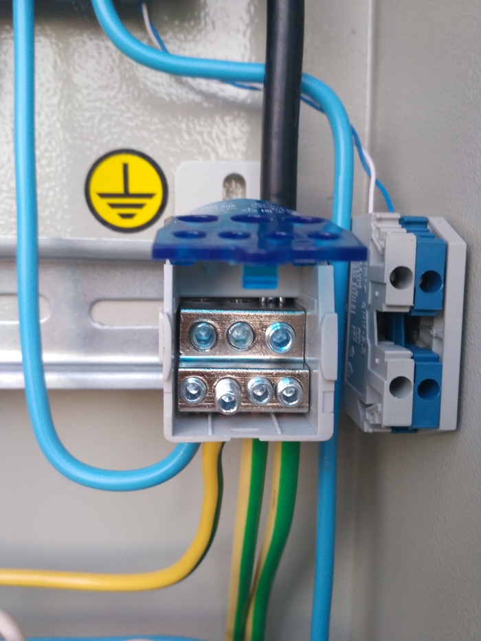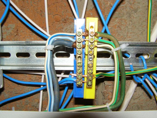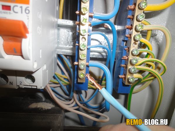 Определить данное устройство заземление легко в щитке не только по продолговатой форме, но и обязательному наличию на корпусе, основании синего или голубого цвета – явного указателя на нулевой тип элемента электросети.