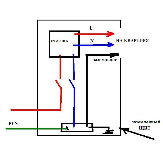 Для удобства рассмотрим однофазную схему, которая применяется в большинстве квартир многоэтажных домов. Две основные линии: фаза и нуль, присутствуют всегда. Они заводятся в прибор учета (счетчик электроэнергии), а на выходе становятся доступными для дальнейшей разводки. В зависимости от применяемой системы, может быть установлена либо только нулевая шина, либо нулевая и заземляющая.