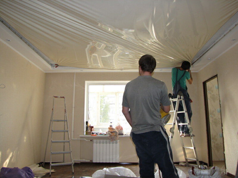 Профессионалы советуют устанавливать натяжной потолок после ремонтных работ в помещении.