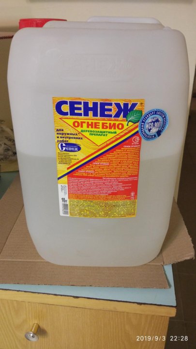 - Составы «Сенеж Огнебио» и «Огнебио Проф» предназначены для повышения стойкости древесины к открытому огню и защиты от биологических повреждений.Эти препараты используются для обработки наружных стен перед их покраской. Если оставить защитные слои, образованные такими антипиренами, без покрытия, вещества быстро исчезнут.