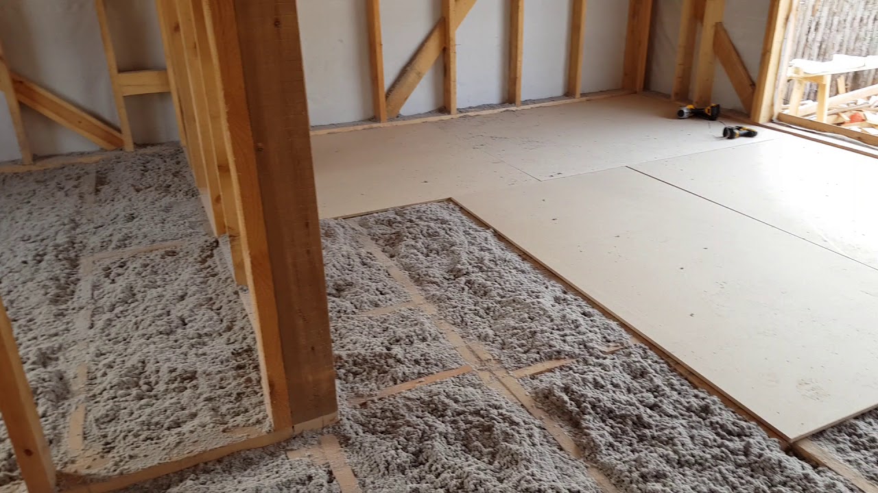 Второй вариант более трудоемкий, но зато позволяет не только выровнять поверхность, но и качественно утеплить подпольное пространство. Предварительно выполняются замеры площади, чтобы фанера, ОСБ, размеры которых немного отличаются, были уложены с минимальным количеством стыков.