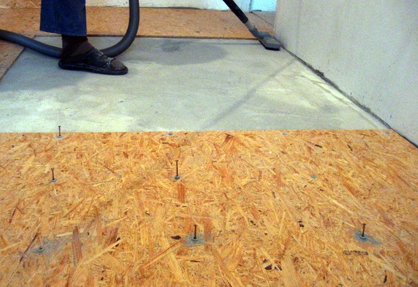Подобным образом монтируется OSB или фанера на деревянный пол. Основание должно быть прочным и ровным, без серьезных дефектов.