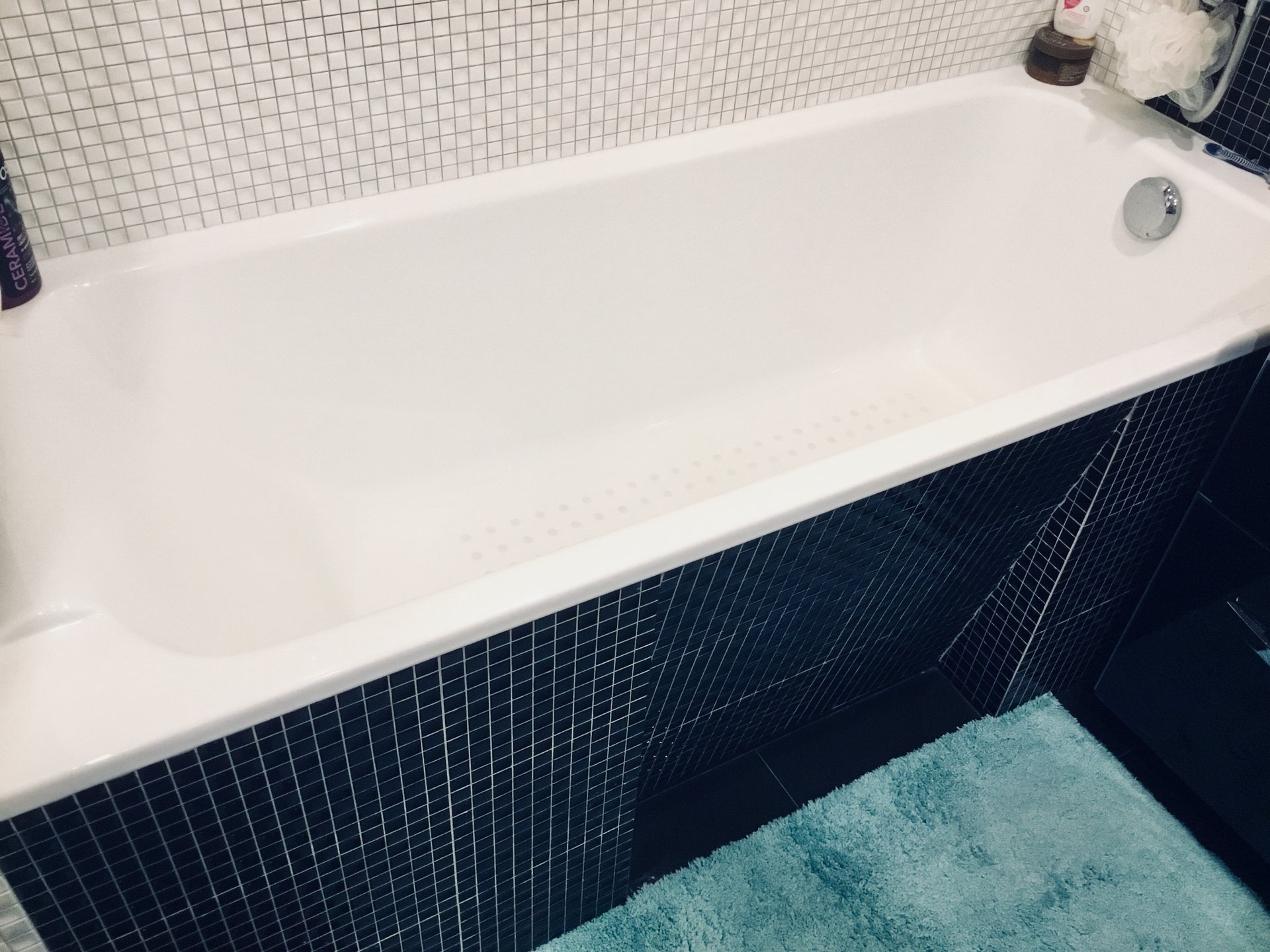 Я была очень рада обратиться в фирму, которая может решить обе этих проблемы сразу. Мастер пришел на следующий день после звонка, вовремя. Очень аккуратно выполнил свою часть работы и всё подробно объяснил, как ухаживать. Ванну, конечно, не узнать…сияет, как новая. Когда муж полез туда первый раз, подскользнулся с непривычки- так вот гладко стало.