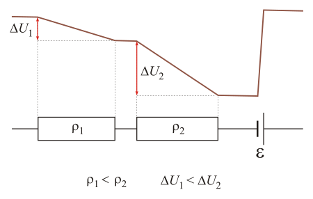 Рисунок 1. Приложенное напряжение и падение напряжения на участке цепи.