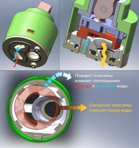 - Если запирающие устройства представляет собой картридж с керамическими пластинами, лучше произвести его замену полностью. При желании ремонт этого узла можно будет выполнить позднее.
