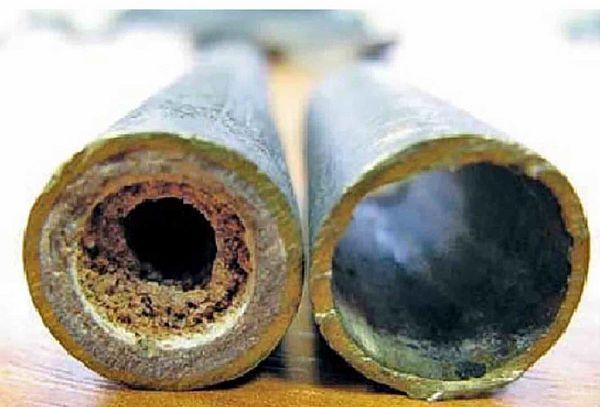 - Износ и засорение в металлических трубах старых систем водоснабжения. Это может быть ржавчина, а также значительные наслоения осадков известняка. Такие дефекты чаще всего проявляются на изгибах трубопроводов, в результате возникает значительный перепад давления и скорости перемещения жидкости. Как результат – посторонние шумы в системе.
