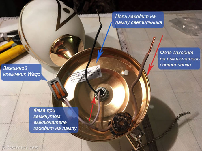 Поскольку этот материал посвящен именно подключения бра, оборудованных встроенным выключателем, который управляется веревочкой или цепочкой, поговорим подробно о порядке монтажа светильников этого типа.