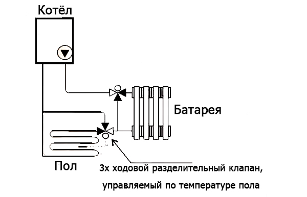 Здесь указан простейший способ регулировки и совмещения работы радиаторов и теплых полов – открытием кранов (настройкой термоголовки) вручную, что требует от пользователей внимания и может утомлять. Кроме того, здесь отсутствует значительная экономия денег, которая достигается с автоматизированным управлением.