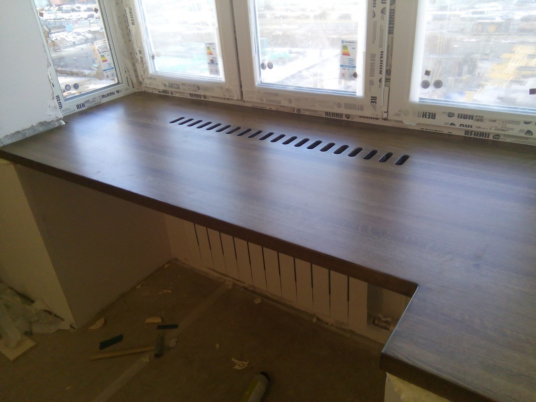 Для переоборудования подоконного пространства нужно купить специальную столешницу. Их производят из различных материалов: