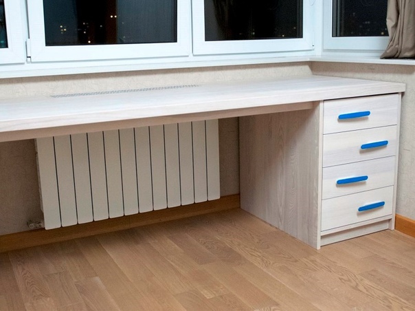 Важно: если под окном находится радиатор отопления, в столе должны быть специальные отверстия. Иначе и сидеть за ним будет очень жарко, и на окнах появится конденсат.