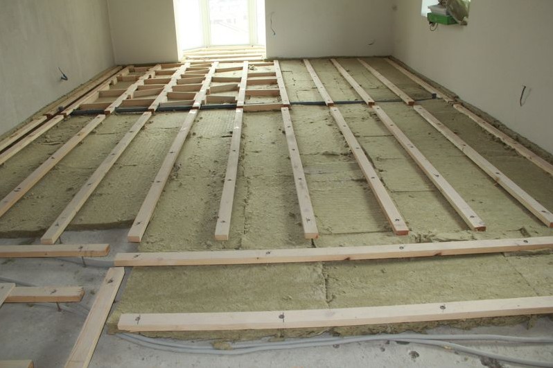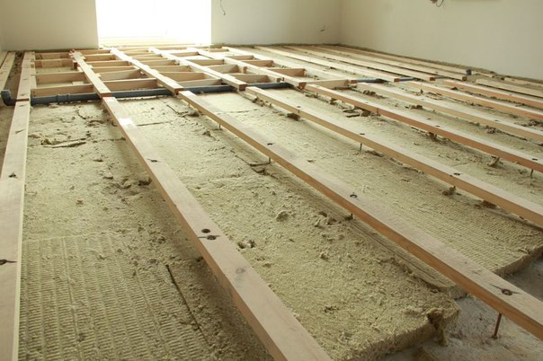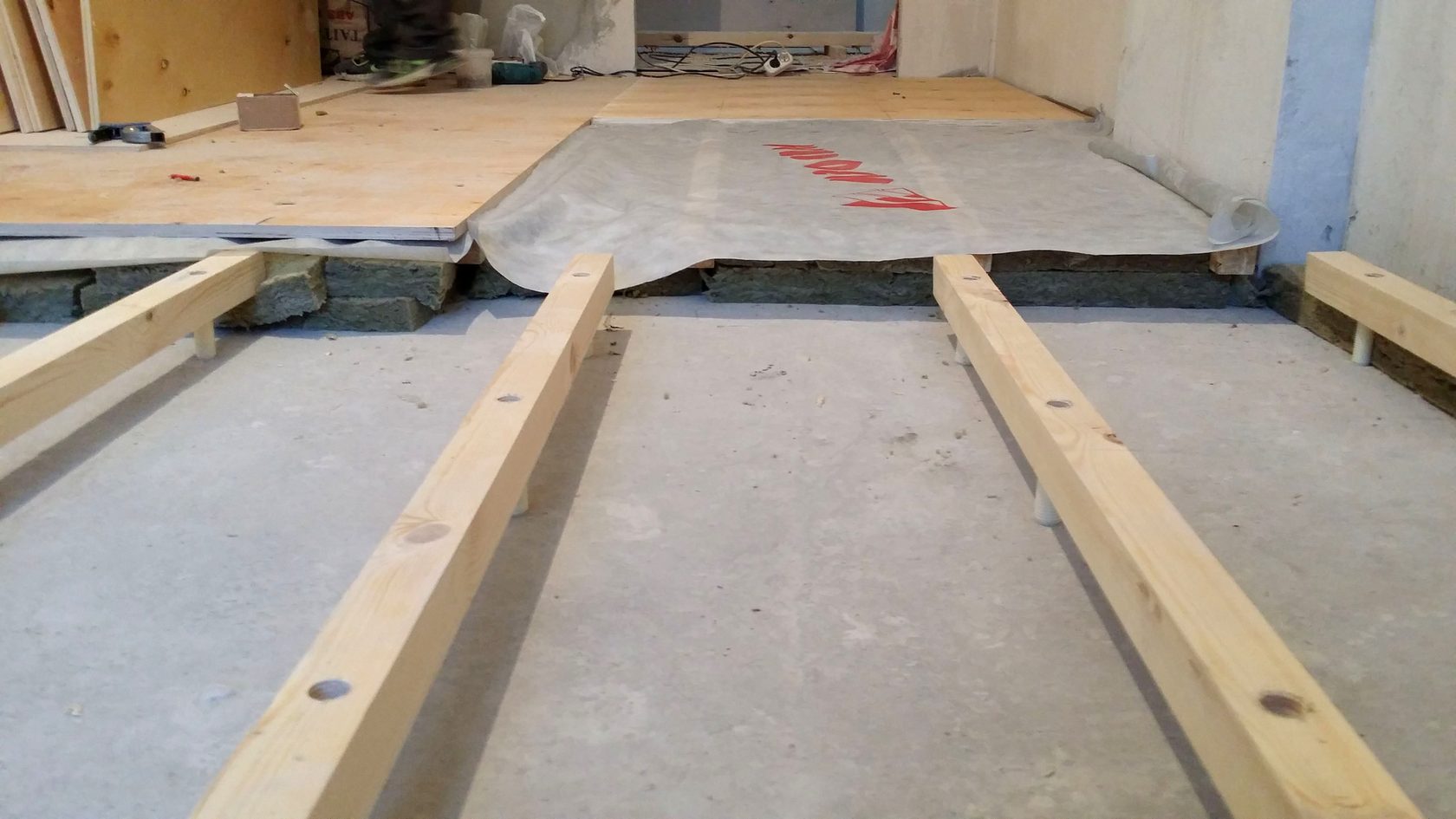 Между лагами пола и бетонным основанием настелена гидроизоляция