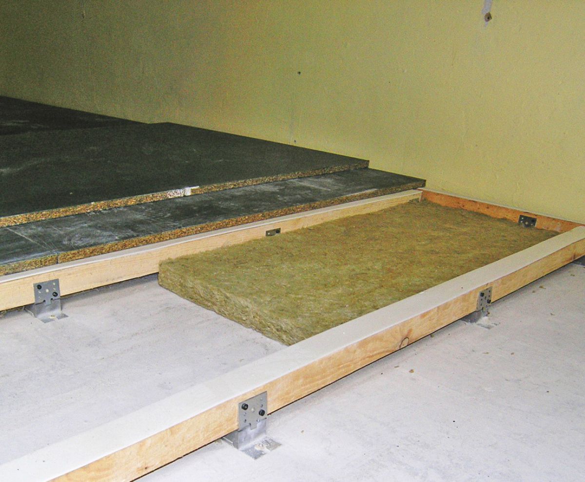 Но крепить их можно и при помощи металлических угольников, что позволяет сделать зазор между основанием и лагой. Нужно иметь в виду, что при этом несущие характеристики пола несколько уменьшаются.