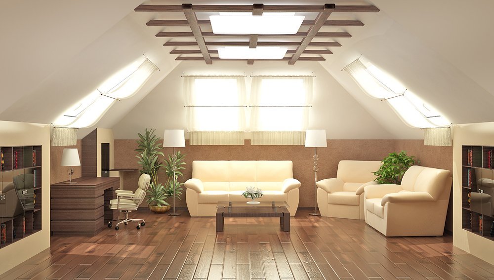 отделка и дизайн мансардного этажа, обшивка гипсокартоном и выбор потолочного плинтуса