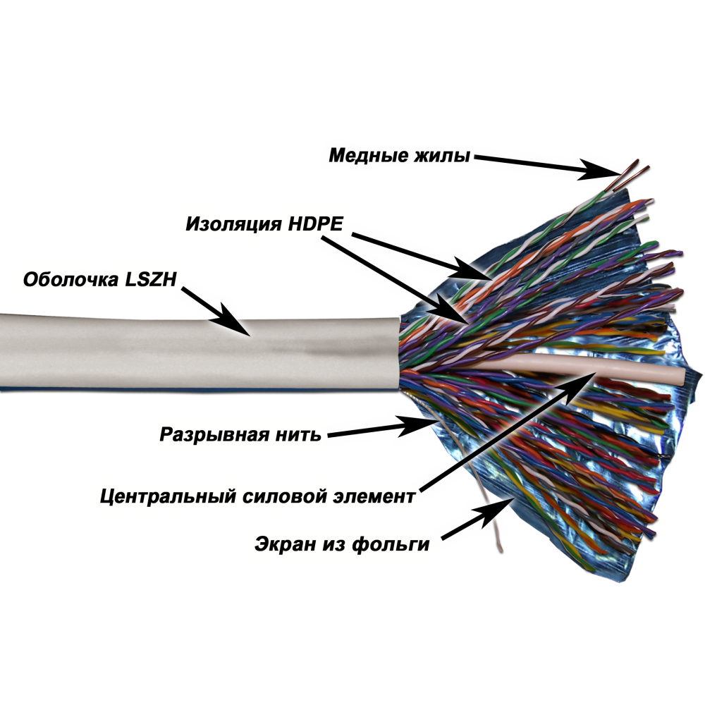 - для защиты от внешних электромагнитных шумов экраном окружают сердечник (жилы) кабеля,