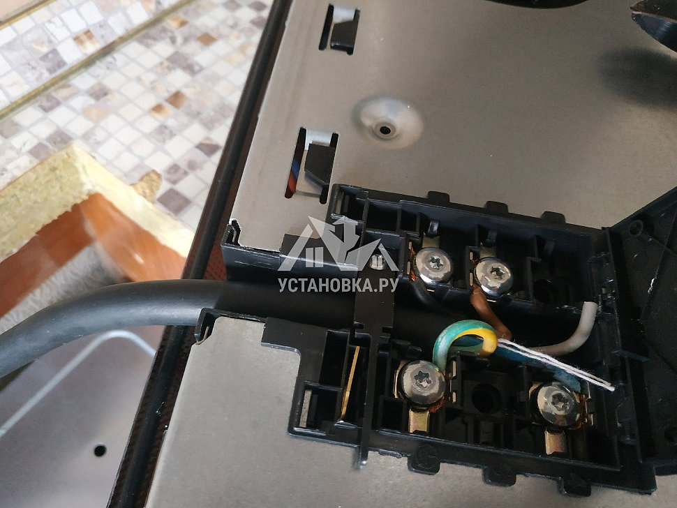 - Подключение гибкого кабеля к электроплите.