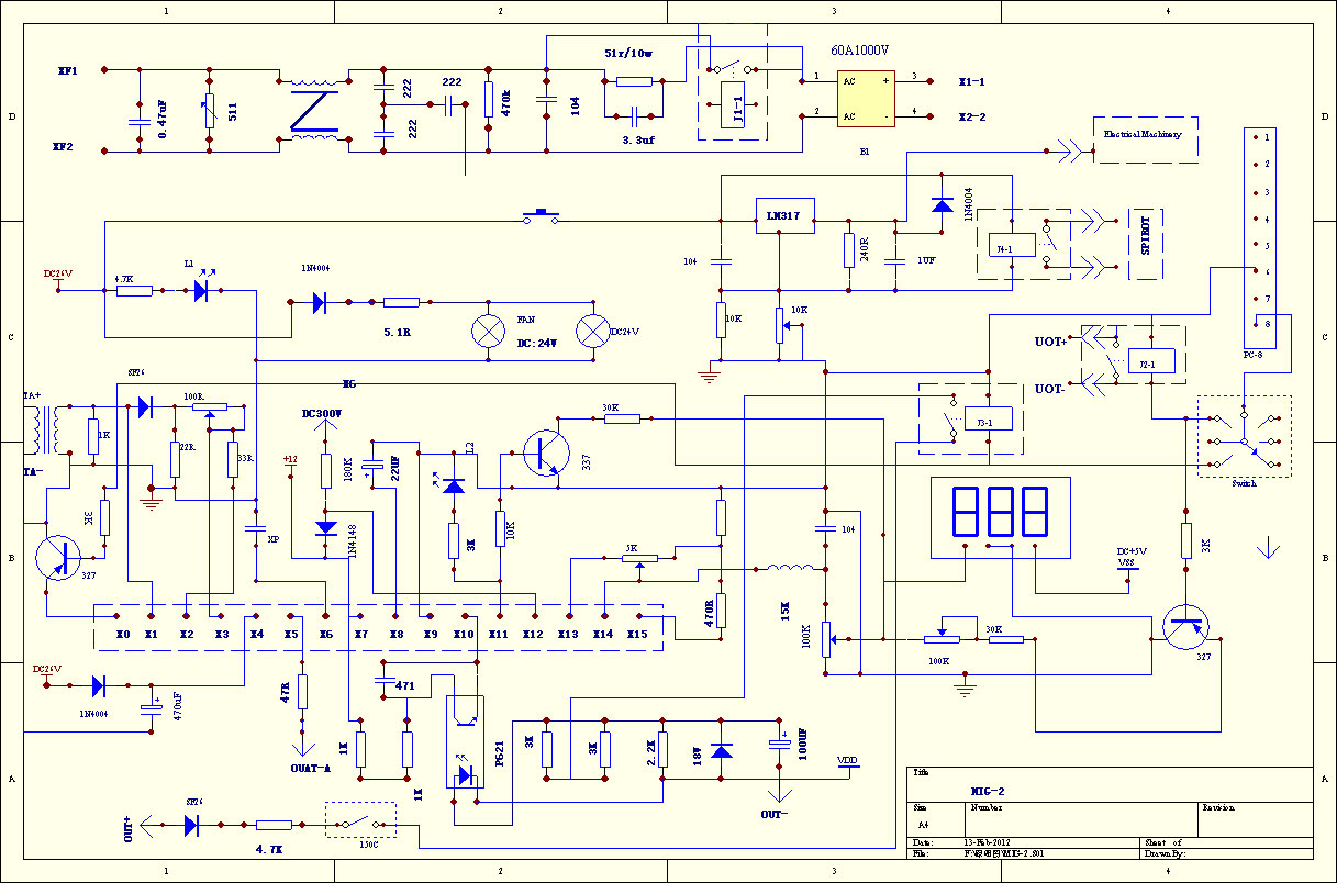Обеспечьте хорошую вентиляцию рабочей зоны.Лучи дуги: вредны для глаз и кожи. При выполнении сварочных работ надевайте сварочный шлем, защитные очки и рабочую одежду. Также следует принять меры для защиты людей в рабочей зоне или рядом с ней. Опасность возгорания. Сварочные брызги могут вызвать возгорание, поэтому удалите горючие материалы с рабочего места. Имейте поблизости огнетушитель и подготовьте обученного человека, который будет им пользоваться. Шум: возможно, вреден для слуха. Неисправность машины: обратитесь к руководству по эксплуатации и данному руководству по ремонту.Обратитесь к местному дилеру или поставщику за дальнейшими советами. Если нет ВЧ, что-то не так с ВЧ-цепью на нижней плате. Если светодиод неисправности не горит, то в трансформаторе T1 произошло короткое замыкание. Если он горит, выключите машину, вытащите гнездо для подключения соединительного кабеля на верхней плате PM-03-A2, включите машину. Если есть газ, сварочную горелку нужно заменить. f. Проверьте и при необходимости замените. Отсутствие звука переменного тока при сварке a. Значение резистора согласующего гнезда в режиме переменного тока.Нажмите на сварочную горелку a. Соединительный кабель соответствует розетке переключателя, есть газ, 1 на панели управления PK-31-A0 с отображаемым значением счетчика является разъемом на плате управления PK-05-A4 неизменна, есть только небольшой разъем в ненадежном соединении. : Переключитесь в режим ARC, затем в режим переменного тока, выключите машину через 3 минуты холостого хода, прикоснитесь к MOSFET на плате вторичного инвертора рукой по очереди. Если нет HF, цепь HF на нижней плате выходит из строя . Если светодиод неисправности не горит, то в трансформаторе T1 произошло короткое замыкание. Если он горит, выключите машину, вытащите гнездо для подключения соединительного кабеля на верхней плате PM-03-A2, включите машину.Если есть газ, сварочную горелку нужно заменить. f. Проверить и при необходимости заменить. Отсутствует звук переменного тока при сварке a. Значение гнезда согласования резистора в режиме переменного тока. Нажмите на сварочную горелку a.