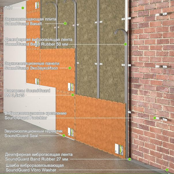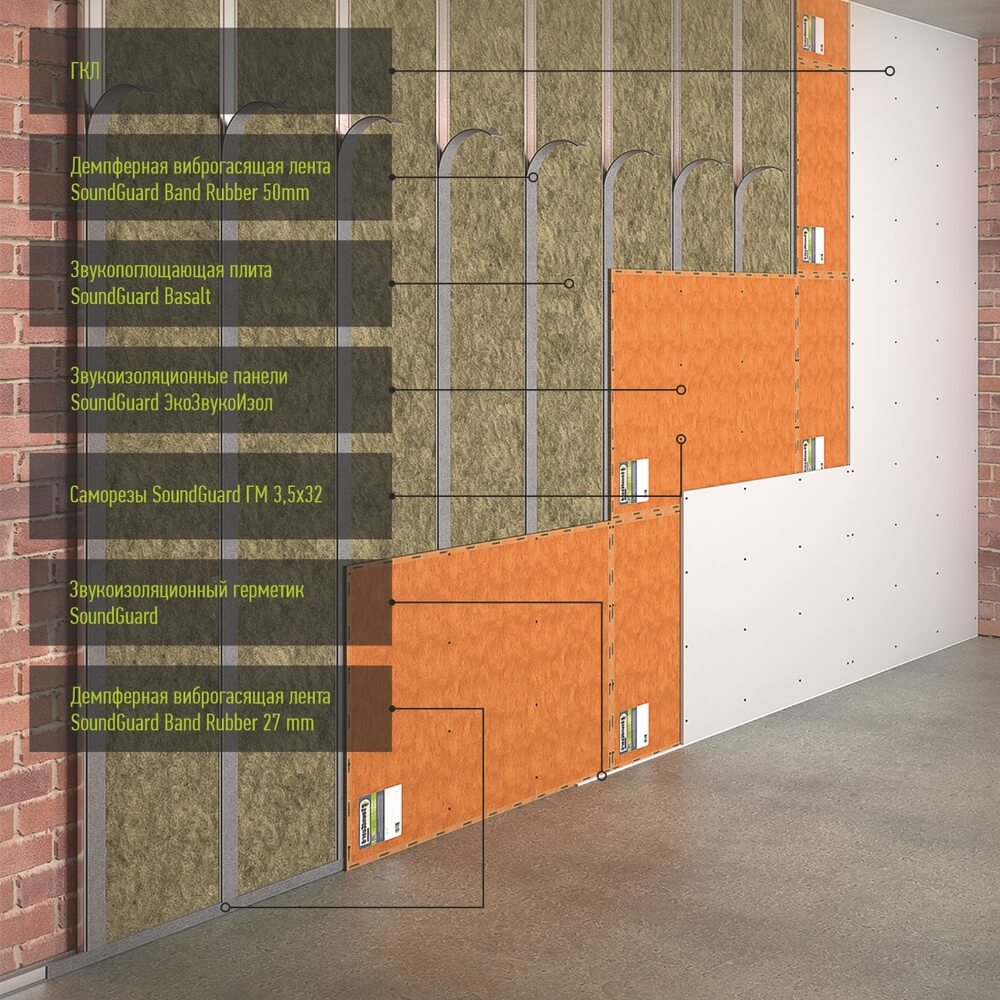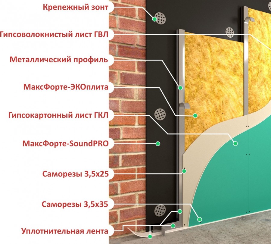 Как правило, такой подход означает использование комбинированных решений, часто напоминающих своеобразный «сэндвич», который состоит сразу из двух или нескольких слоев, включающих гипсокартон, минеральные наполнители и так далее.