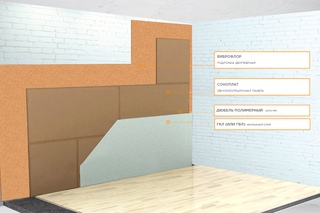 Используется в помещениях с тонкими стенами. Имеет отличные тепло и звукоизоляционные качества, но боится влажности.