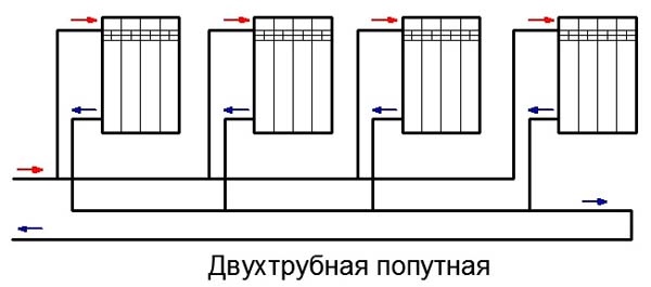 Тем не менее, соблазн избежать гидравлической настройки системы не должен приводить к поспешным необдуманным решениям. Двухтрубная попутная система характеризуется высокой материалоёмкостью, потому её монтаж оправдан далеко не во всех случаях.