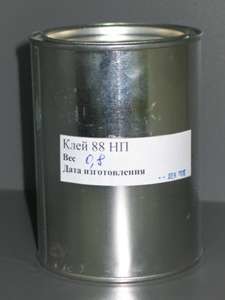 Подходит для небольшого бытового ремонта. Клей влагостойкий, не вызывает окисления металла. Выпускается в емкостях от 1 до 200 литров. - 88-НП создан для склеивания древесины с резиной, бетоном, кожей и пластиком. Он очень водостойкий, соленая и пресная вода химически не воздействует. По прочности превосходит клей 88-СА. Клеевой состав используется в судостроении и монтажных работах. Не теряет свои свойства при температурах от -50 до +70 С. Не вызывает коррозии металла, применяется при холодном и горячем методе склеивания. Реализуется в тюбиках по 50-125 мл.