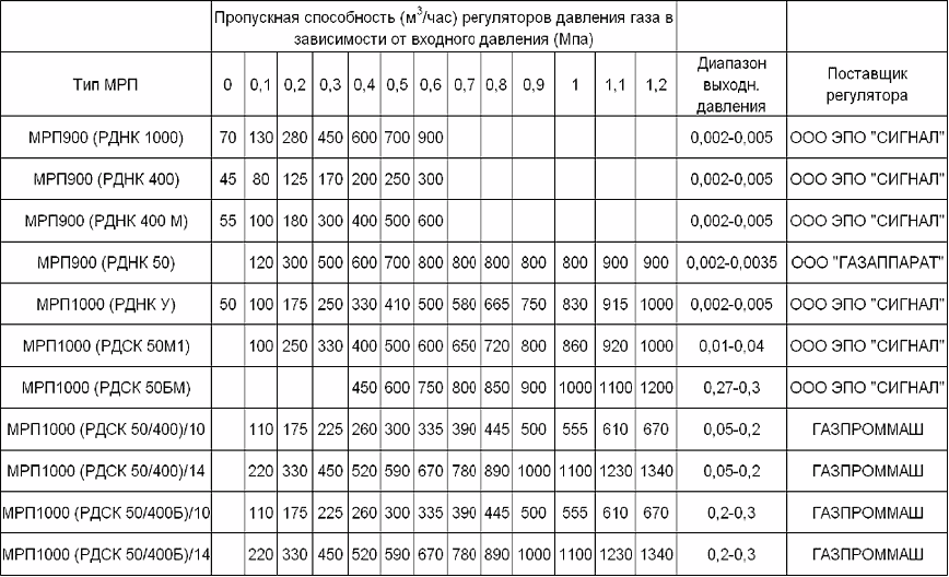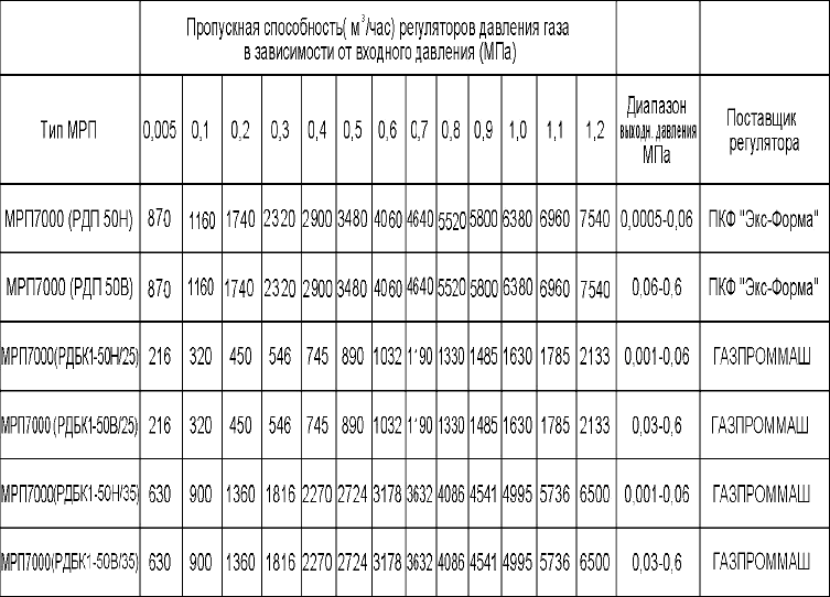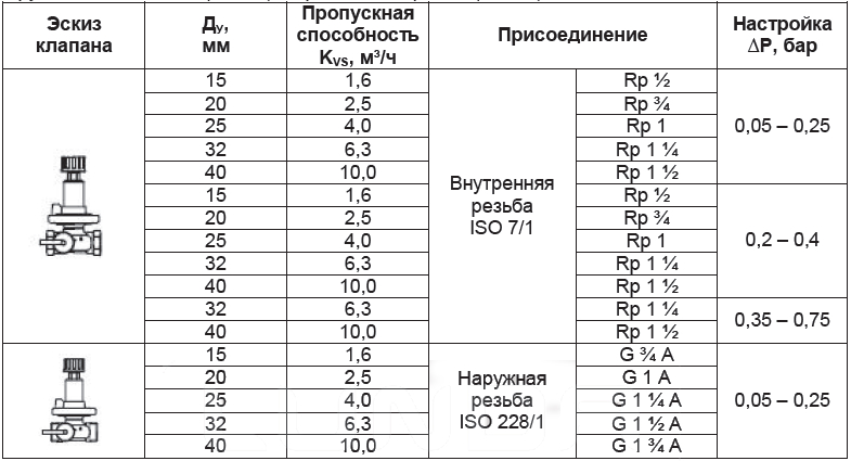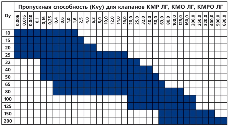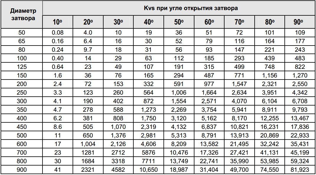 Таблица 1. Паспортные значения пропускной способности клапана VT.031