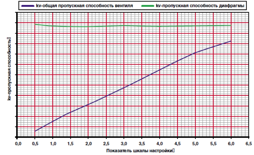 Основной гидравлической характеристикой термостатического клапана является пропускная способность Kv. Это расход воды, который способен пропустить через себя клапан при перепаде давления на нем в 1 бар.