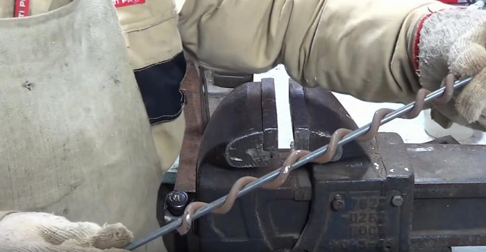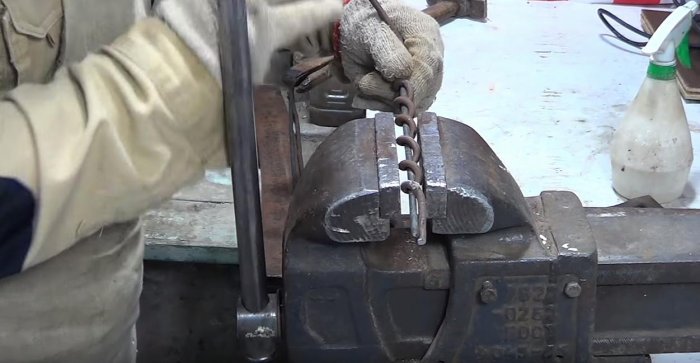 Пару раз зажимаем шнек в тисках параллельно — это действие сделает его прямым.