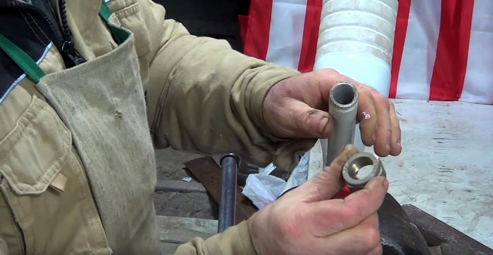 Вставляем шнек в трубу. Проверяем насколько плотно одно входит в другое. Если свободно — трубу нужно взять помешьше.