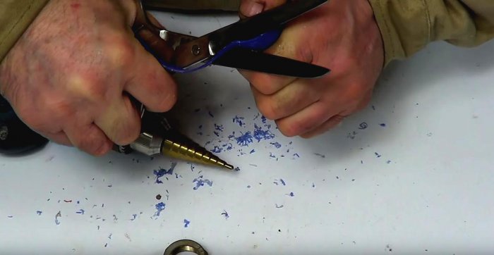После этого всё лишнее было отрезано, а в торцах колец были сделаны наклонные вырезы, чтобы разместить в них концы спиральных лопастей: