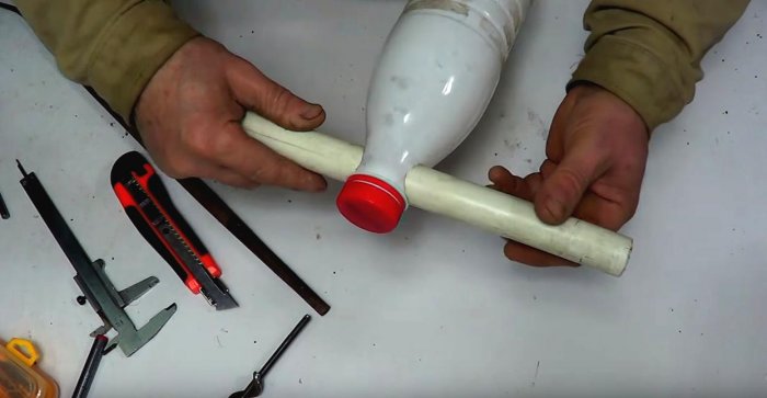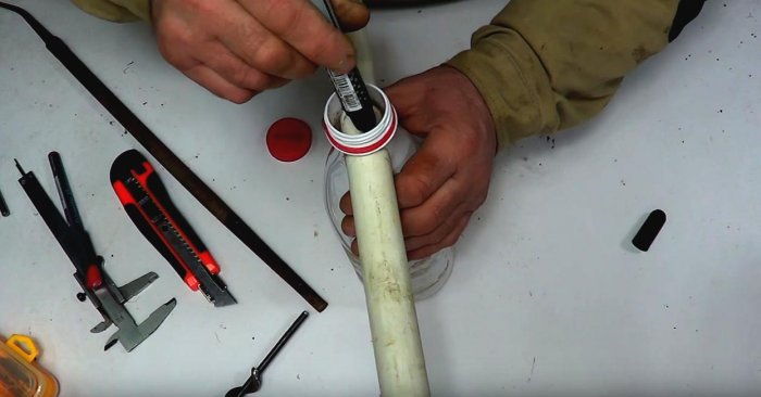 Вставляем трубу в бутылку.