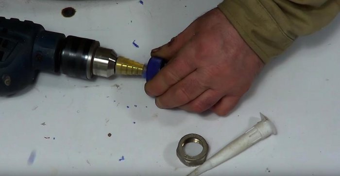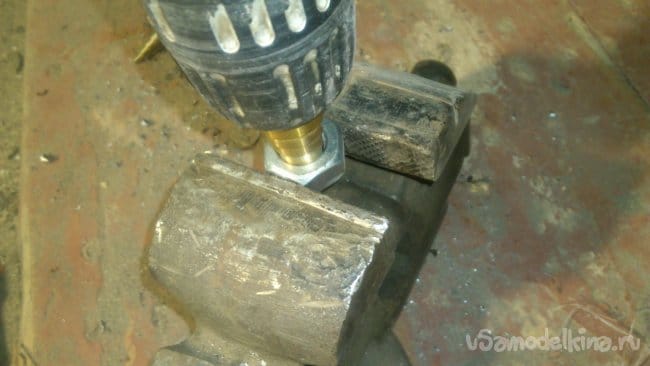 Но решил я это очень просто — высверлил из гайки резьбу, оставив всего два витка: