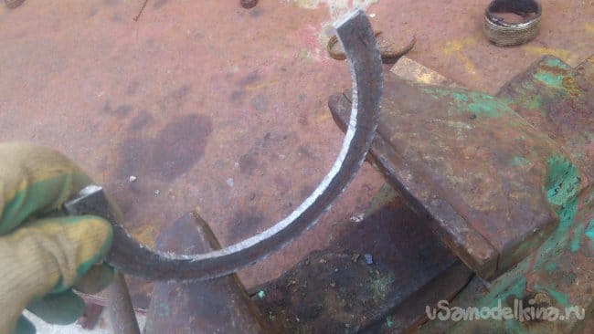 Изготовить из полуколец спирали мне помог обрезок железнодорожного рельса, который я использую в качестве