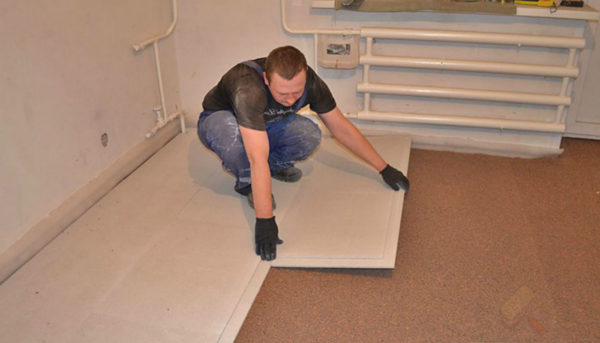 Укладка ГВЛ на деревянный пол.